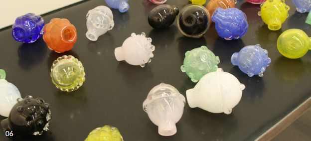 不大的展厅里,一共陈列了莫娜大约8件作品。看上去很安静,但漫漫地弥漫一种伤害感。可爱玻璃彩色小瓶的造型是香瓜手榴弹;日常厨房用具被放大后充斥着尖利的边缘和切割意象;地球的形象牢笼般隔绝。但展览并不是完全的疼痛,中间相互编织在一起的红色电线,以及间歇性发光的灯泡群,为我们带来内在的温暖和光芒。——唐尧