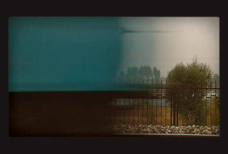 我用十二架摄像机同时开机,拍摄这条铁路和奔跑在其上的列车。展示的时候,十二张屏幕同步展示12个录像。在这12张屏幕上,奔跑的列车也是每四分半钟,就在这个屏幕组成的圈子里兜一圈。用这个方法,用这12张屏幕,我把这条环形铁路和在路上奔跑的列车搬到了展示空间中。